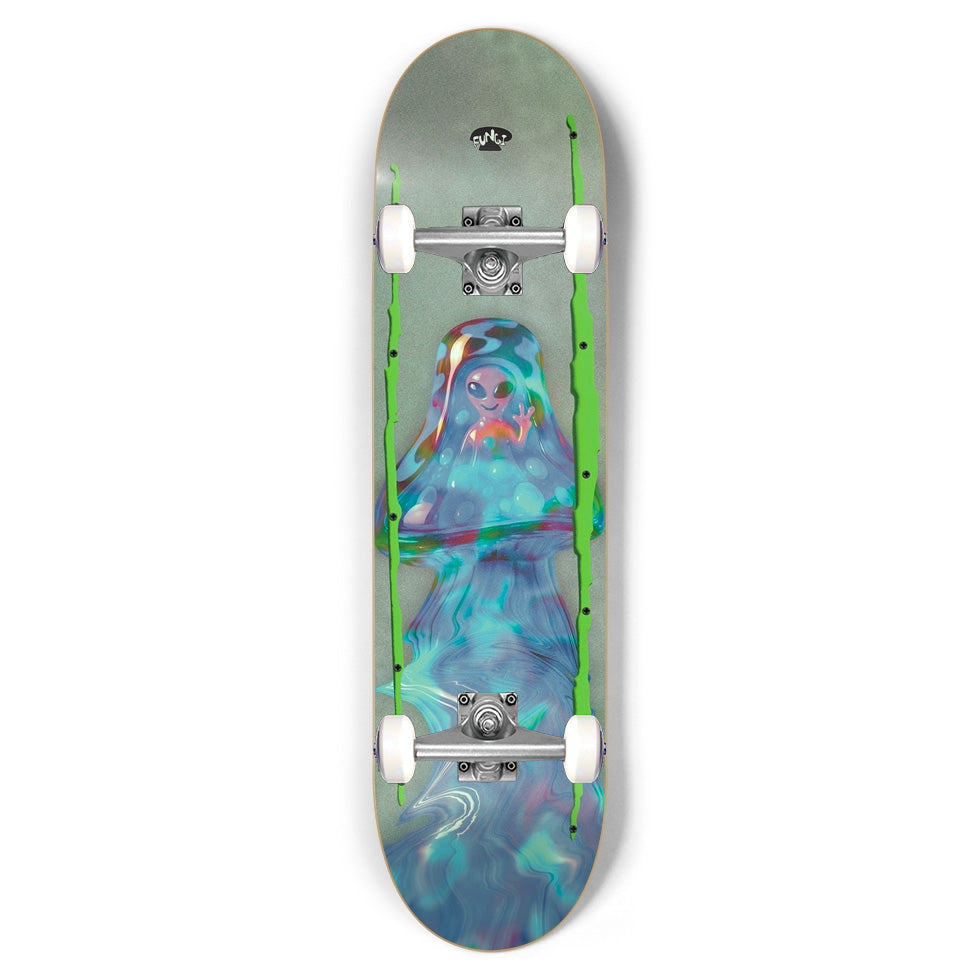 Completes ship assembled with Jessup griptape, silver trucks, blank white wheels, Independent bearings and standard hardware.